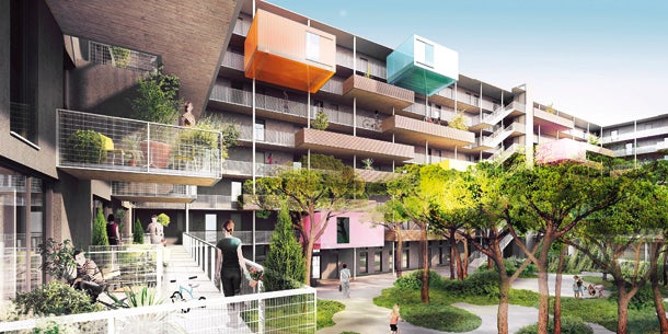 Schauplatz der ersten 316 SMART-Wohnungen ist das Sonnwendviertel im 10. Wiener Gemeindebezirk – in unmittelbarer Nähe zum neuen Hauptbahnhof. Von den 151 geförderten Mietwohnungen, die der Bauträger Heimbau ab Frühjahr 2014 auf Bauplatz B.04 errichtet, sind 116 im SMART-Standard. Unter dem Titel „Bassena neu“ besticht die Wohnhausanlage durch ein Konzept, das den zukünftigen Bewohnern Kommunikationsmöglichkeiten und -flächen unmittelbar vor der Wohnungstür bietet. An die zu den Wohnungen führenden hofseitigen Laubengänge sind auch die Gemeinschaftsräume und Nebenräume angelagert. Neben einer Hausbetreuung vor Ort punktet die Wohnhausanlage auch mit ökologischen Vorzügen wie der kontrollierten Wohnraumlüftung mit Wärmerückgewinnung und