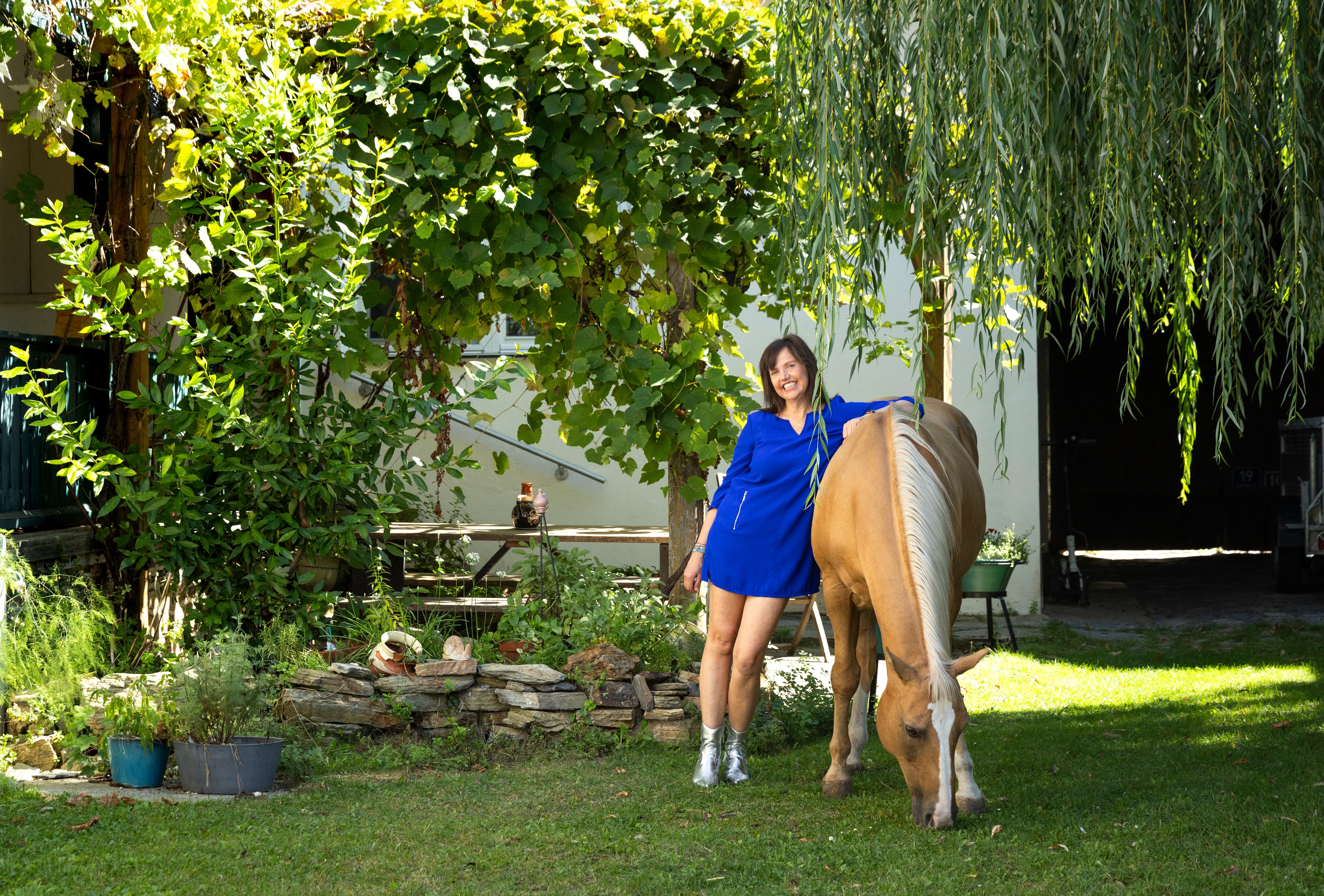 Der Klub der Grünen Daumen spielt nicht nur im Gartenkrimi eine Hauptrolle – im Innenhof ihres Bauernhauses sprießen Rasen, Blumen, Weiden und wilder Wein. So diese nicht von Mr. Big und Eddie verspeist werden. Die beiden sind die liebsten Mitbewohner von Martina und Alan. Zwei Pferde, die hinter dem romantischen Schuppen auf der eigenen Koppel ein tierisches Traumleben führen. „Ich war früher Reiterin, bin sogar Turniere geritten“, so die Autorin, die dafür heute gar keine Zeit mehr hätte.