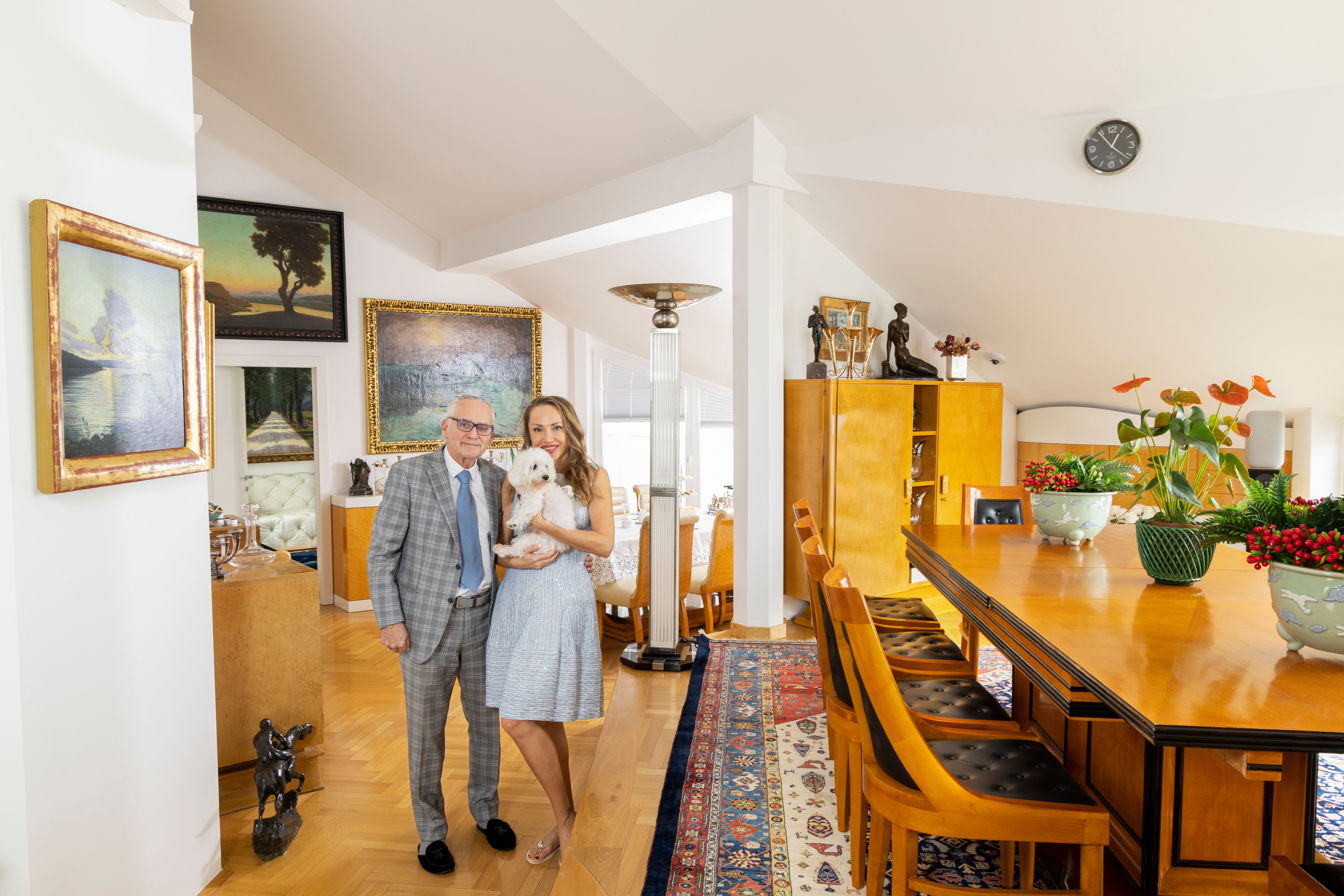 Wie es dazu kam? „Vor 40 Jahren habe ich hier im vierten Stock eine völlig devastierte 200 Quadratmeter-Wohnung entdeckt“, so Mucha, der diese damals aufwendig restaurieren ließ. Ein Gedanke weiter führte ihn auf den ausbaufähigen Dachboden und zu der Idee, diesen um 15 Schilling pro Quadratmeter zu mieten. „Dafür baute ich alles auf meine Kosten aus.“ Richard Lugners Baufirma zog eine Stahlbetonplatte ein, doch der Innenausbauer vergaß auf die Dampfsperre. Die darauffolgende Klage gewann Selfmademillionär Mucha „mit Bomben und Granaten“ – und baute weiter aus.