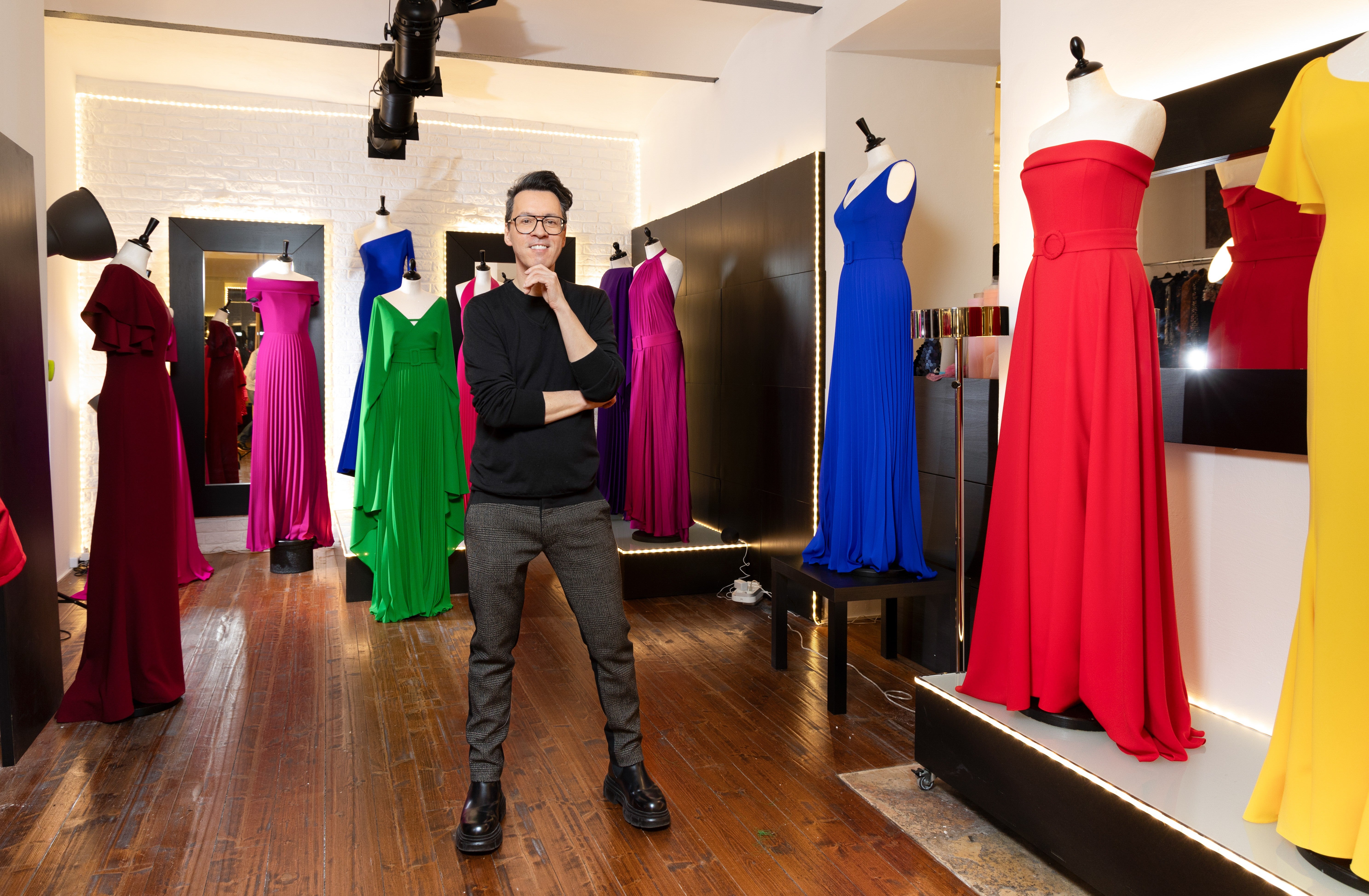 Rote Traumkleider schmücken in diesen Tagen die Puppen am Eingang – und sind nur ein Vorgeschmack auf das modische Schlaraffenland, in das Thang de Hoo hier entführt. In den zwei großzügigen Showrooms hat der Designer alles ausgestellt, was das ballbegeisterte Herz begehrt. „In diesem Jahr liegen vor allem starke Rottöne im Trend“, verrät der gebürtige Holländer mit asiatischen Wurzeln, der seit 1990 in Wien lebt und arbeitet.