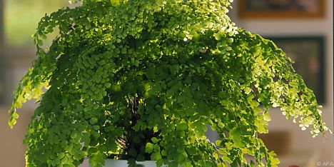 Wie alle Zimmerfarne braucht auch der Tüpfelfarn (botanisch: Pellaea spec.) nur wenig Licht. Dafür benötigt die - ursprünglich in Wäldern wachsende - Pflanze feuchte Luft. Deshalb ist der Tüpfelfarn die ideale Zimmerpflanze für das Bad. Der Farn sollte allerdings nicht in der Nähe eines Heizkörpers stehen, denn den Blättern bekommt die trockene Hitze nicht.