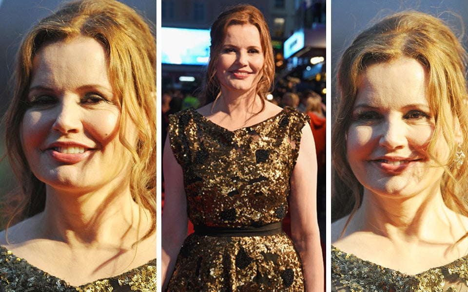 Um Himmels Willen, Geena, was hast du dir da nur angetan? Auf der Premiere des Films „Suffragette“ ist die einst so schöne Schauspielerin gar nicht wieder zu erkennen. Mit starrer Mimik und ausgebeulten Gesichtszügen marschierte der Hollywood-Star über den roten Teppich. Ja, so sieht man eben aus, wenn man versucht, mit fast 60 noch wie 30 auszusehen.