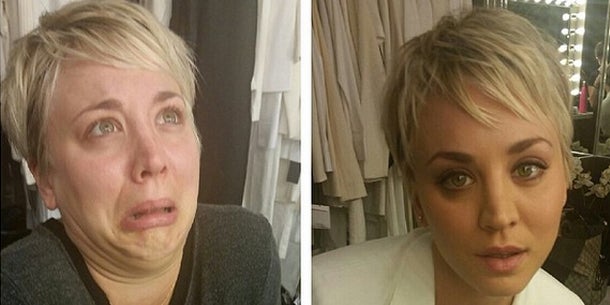 Das Vorher-Bild zeigt die nackte, ungeschminkte Wahrheit: Nämlich das Kaley eine Frau mit Humor und ohne Allüren ist. Chapeau!