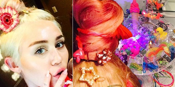 Nach der Beendigung ihrer Tour hat Popgöre Miley Cyrus wieder viel Zeit und widmet sich nun ihrer Vorliebe für DIY. Sie bastelt Kette und sonstige Accessoires - so wie wir es als Kinder getan haben. Auf Instagram postet sie ihre beachtliche Sammlung an Bastel-Materialien aus der Spielzeugabteilung - und posiert sogleich mit ihren Haarskulpturen für Selfies. "Bricolage"-Hair wird dieser neue DIY-Trend genannt - und Miley verleiht ihm ihre ganz eigene Note. Desto bunter, absurder und verspielter, desto besser. Wir sollten uns also nicht wunder, wenn Teenager demnächst mit seltsamen Basteleien in den Haaren herumlaufen...