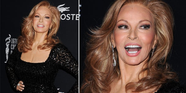 Bei der Award-Show glänzte die Hollywood-Omi durch ihr perfektes Make-Up, ihr altersgerechtes und zugleich sexy, schwarzes Kleid und durch verführerische (aber offensichtlich nicht ganz echte) Walle-Mähne - beim Heranzoomen ist klar, dass Raquel eine Perücke trägt.