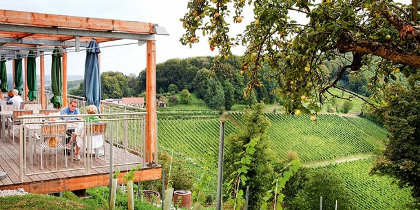 1. Magnothek. Besser geht es nicht: sensationeller Ausblick auf die südsteirischen Weinberge, herrliche Tement-Weine, köstliches Essen. www.magnothek.at