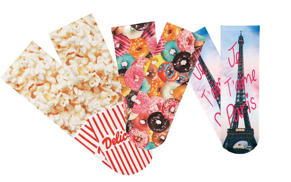 Spätestens seit Sängerin und It-Girl Rihanna unter die Sockendesigner gegangen ist, ist klar: An außergewöhnlichen Looks am Fuß kommen wir jetzt nicht mehr vorbei! Bunte Söckchen und Strümpfe machen aus jedem lässigen Freizeitlook ein Outfit, dass auf jedem Streetstyle-Blog zu Hause sein könnte. Unsere Favoriten? Ganz klar, die zuckerbunten Popcorn.- und Donut-Socken und die Hommage an Paris! Das Beste: Die Strümpfe sind auch noch echte Schnäppchen!