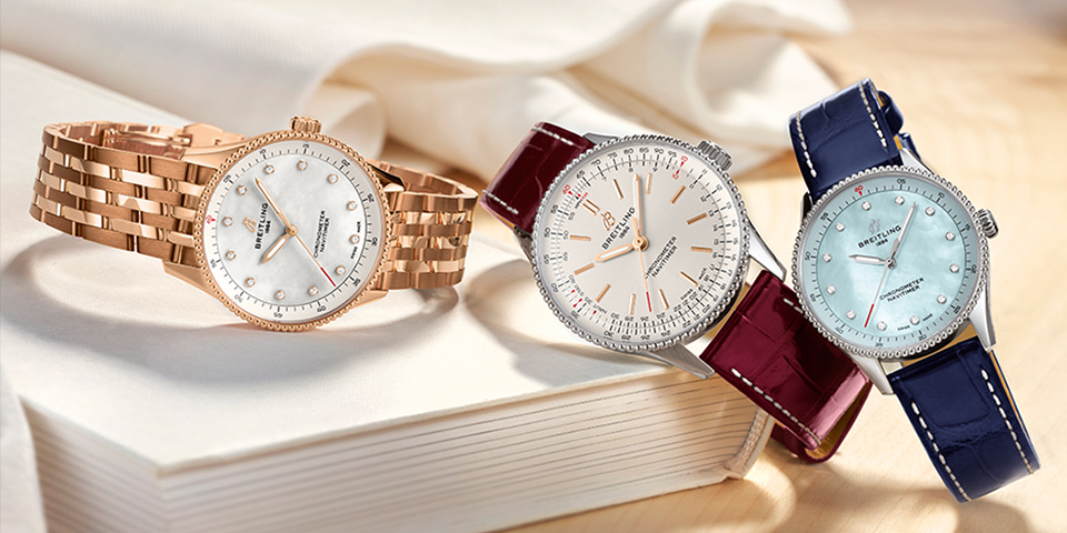 Doch diese Blickfänger haben so viel mehr zu bieten als nur ihre neue, filigranere Gehäusegrösse. Pastelltöne, Perlmutt und rückverfolgbare Rohstoffe verbinden sich mit der markanten Perlenlünette der Navitimer, um den Zeitmessern einen schmuckähnlichen Charakter zu verleihen.