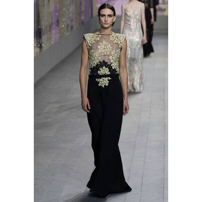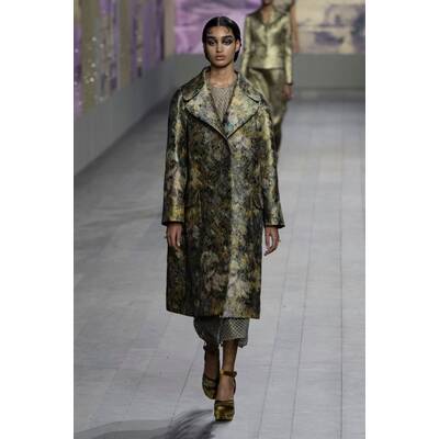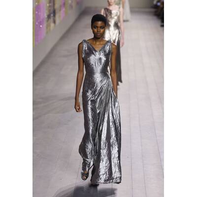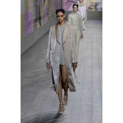 Inspiration der Couture-Roben war keine andere als Josephine Baker, die amerikanisch-französische Jazz-Legende. "Sie war eine unglaubliche, selbstbewusste Frau. Diese Eleganz wollte ich in der Christian Dior Frühjahrs-Haute-Couture Kollektion widerspiegeln“, sagte Chiuri. Die Kulisse der Modenschau spiegelte Porträts von ähnlich bahnbrechenden schwarzen Hollywood-Schauspielerinnen und Persönlichkeiten des 20. Jahrhunderts, mit Josephine Baker im Mittelpunkt.