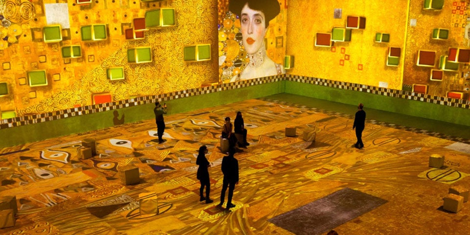 Im „immersiven“ Klimt-Erlebnis taucht der Betrachter in die multimediale Illusion aus Bild und Ton ein und empfindet diese als absolut real – ermöglicht durch ein innovatives 3D-Mapping-Projektionssystem.