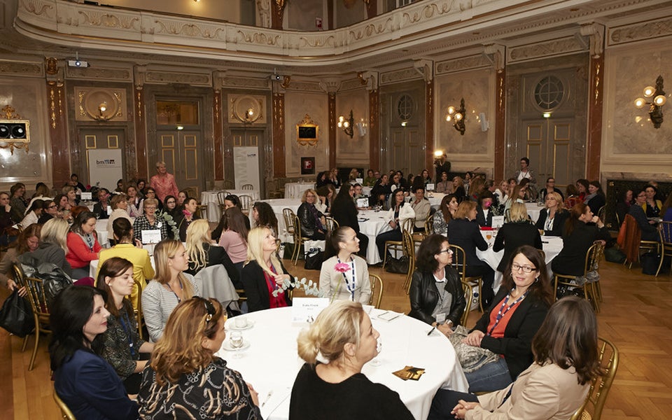 Der Treffpunkt für Medienfrauen aus Journalismus und PR in Österreich. MADONNA-Herausgeberin Jenny Fellner am Podium.