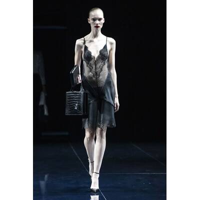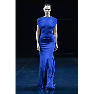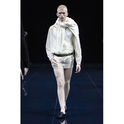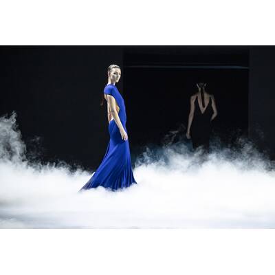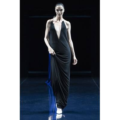 Die Inspiration? Das Mitternachtsbaden. Klingt romantisch, aber Ackermann übersetzt es in Mode mit lasergeschnittenem Lackleder, durchsichtigem Satin und Triangel-BHs statt Oberteilen. Jockstraps für die Männer inklusive. Dazu Abendkleider, die der Schwerkraft trotzen.