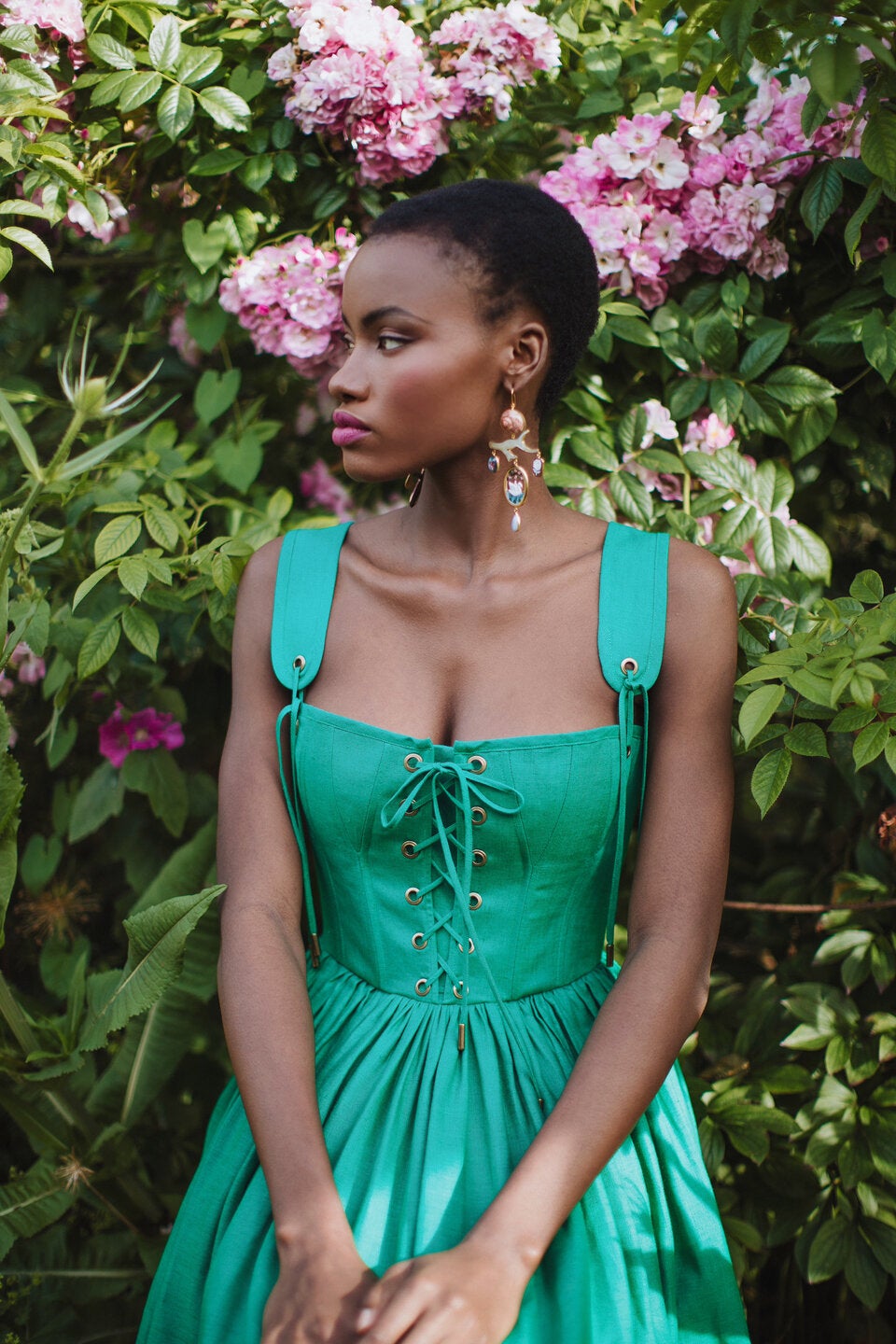 Ja, Sie haben richtig gesehen. Dieses Kleid erinnert verdächtig an ein Dirndl - und ist tatsächlich eines! Die österreichische Designerin Lena Hoschek, bekannt für ihre verspielten, femininen Looks mit Retro-Charme, hat es mal wieder geschafft: Ihre Kreation landet direkt im Kleiderschrank der wohl stilprägendsten Serienfigur aller Zeiten.