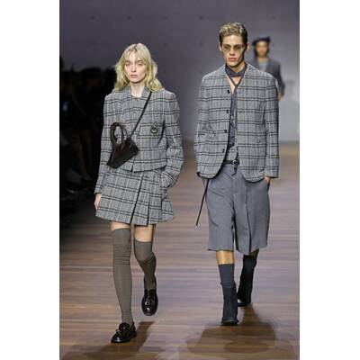 Die Designer präsentierten die gesamte facettenreiche Welt von Emporio Armani und legten sogar noch eine Schippe drauf. Ob die perfekte Alltags-Jacke, ein eleganter Mantel oder gar Frack und weiße Fliege für den großen Auftritt: Diese Kollektion ließ keine Wünsche offen. Mit federndem Schritt und oft paarweise eroberten die Models den Catwalk. Der Vibe? Eine meisterhafte Mischung aus modernen Hipstern, klassischen Preppies und schickem Landadel.