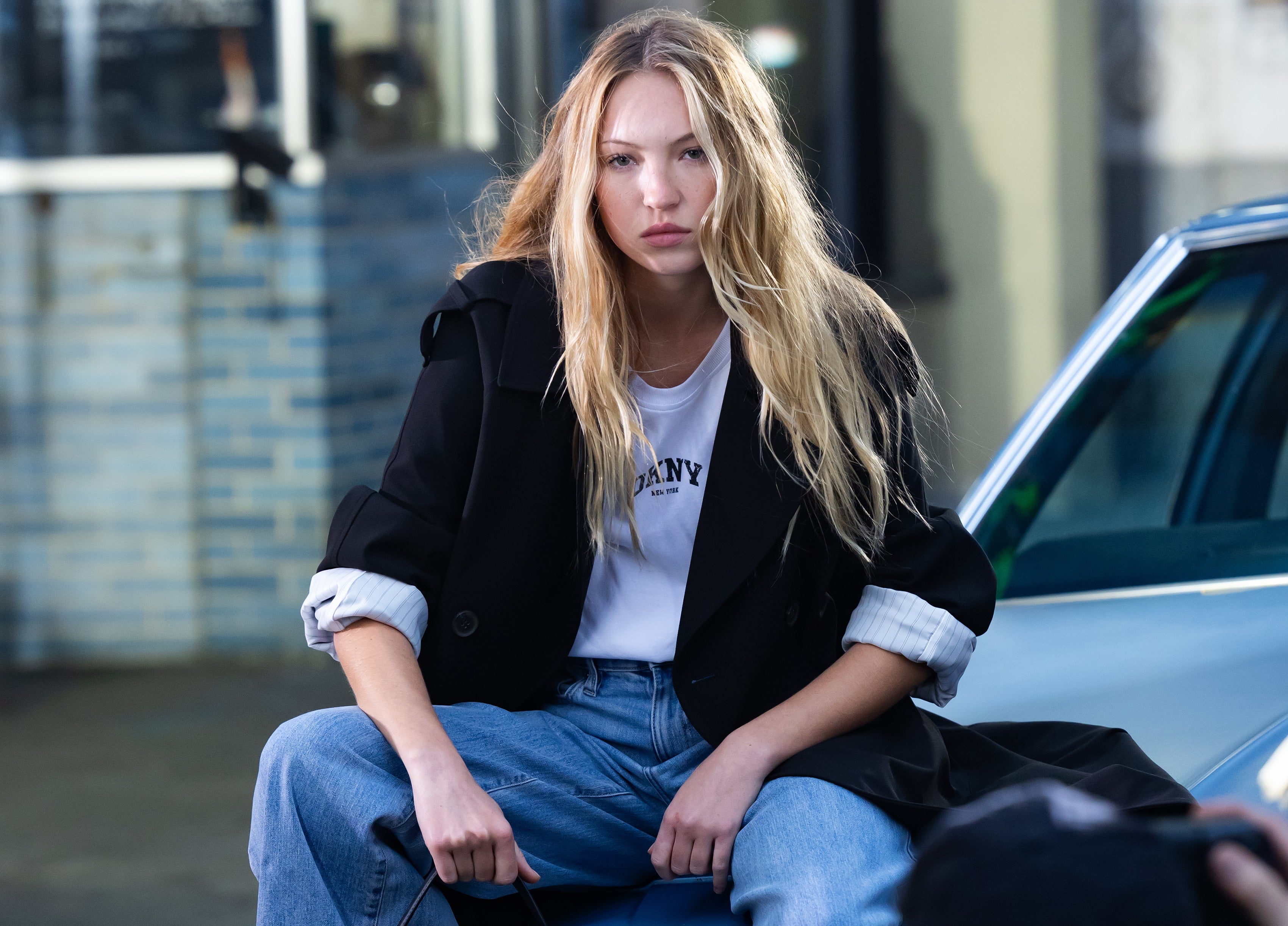 Diese Woche zeigte Lila erneut, dass sie ein gut gebuchtes Model ist, als sie für eine DKNY-Kampagne posierte. Sie trug tief sitzende Baggy-Jeans, ein schlichtes T-Shirt und einen schwarzen Trenchcoat mit lässig hochgekrempelten Ärmeln. Dabei strahlte sie mühelose Coolness aus und wirkte wie eine moderne Interpretation von Kates ikonischem Look. Ihre langen Locken trug sie in lockeren Wellen, ganz im Stil von Kate in ihren besten Jahren.