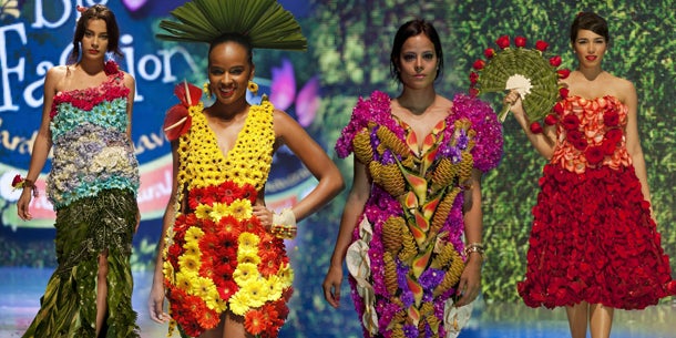 Die bunte der Welt der Blumen inspirierte den kolumbianischen Designer Felipe Sinisterra dazu eine ganze Modekollektion daraus zu gestalten. In Cali, einem Bezirk von Valle del Cauca in Kolumbien wurde nun die "BioFashion Show 2013" abgehalten. Zum siebenten Mal bereits zeigte der Designer beeindruckende Kreationen aus echten Blumen, Gräsern, Blättern und Obst. Die Modenschau soll das Bewusstsein für Umweltschutz wecken.