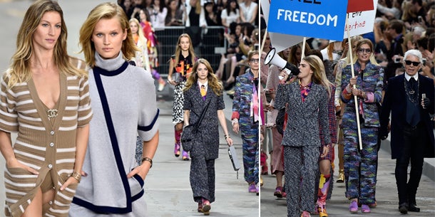 Das Chanel-Defilee endete in einer schicken Fashion-Demo. Karl Lagerfeld marschierte mit.