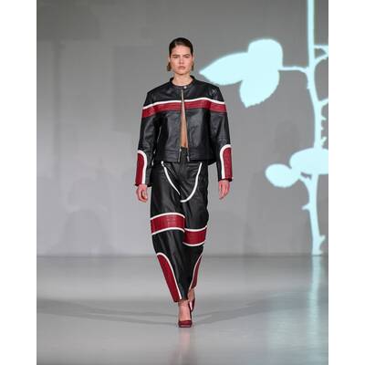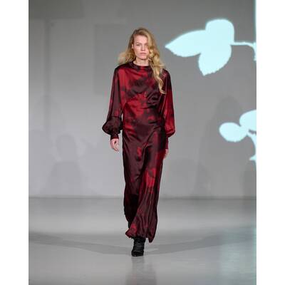 Gestuz steht für klare Linien, weibliche Schnitte und eine Rock-’n’-Roll-Ästhetik. Die Hauptmuse der Herbst/Winter-'25-Kollektion ist die Femme Fatale. Die Kreationen vereinen luxuriösen Rock’n’Roll-Chic mit dunkler Romantik. Schwarzes Leder trifft auf zarte Spitze, grober Strick verschmelzt mit glamourösen Blumenkleidern. Unter dem Titel „Don't Bring Me Roses“ gehören dunkle Rottöne, Grün, Braun und überraschende Weißakzente zu den dominierenden Farben.