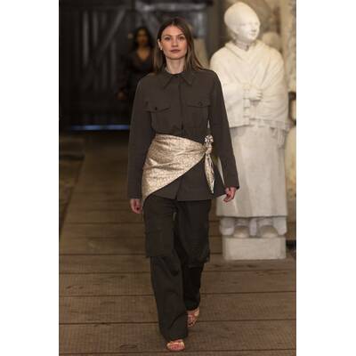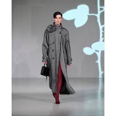 Baum und Pferdgarten ist bekannt für verspielte Details, auffällige Prints und kontrastreiche Designs. Die Herbst/Winter-’25-Kollektion „Heartbeats“ verbindet nostalgischen Brit-Charme mit retro-geprägten, rustikalen Elementen. Karos treffen auf Leopardenmuster, Strick auf funkelnde Details, während Cord und Mesh einen vielseitigen Stilmix kreieren. Erdige Braun- und Pflaumentöne unterstreichen die ländlich inspirierte Ästhetik. Die Show fand im Hauptsitz der Brand statt und wurde in einem Fabrik-Gebäude inszeniert. Riesige Ballonherzen füllten den Raum und verliehen der Show eine einzigartige Atmosphäre.