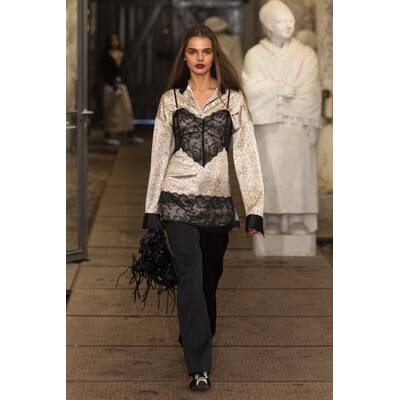 OpéraSport eröffnete als erste Show die Kopenhagener Fashion Week. Inspiriert vom dänischen Thronwechsel vereint die Herbst/Winter-’25-Kollektion königliche Elemente mit Art-Déco-Einflüssen. Opulente Details wie ballonartige Ärmel, Spitze und Kunstfell treffen auf klare Silhouetten und seidige Stoffe. Ein besonderes Highlight ist die Zusammenarbeit mit Puma, darunter die Speedcat-Ballerinas, die sich als neues Must-have entpuppen.