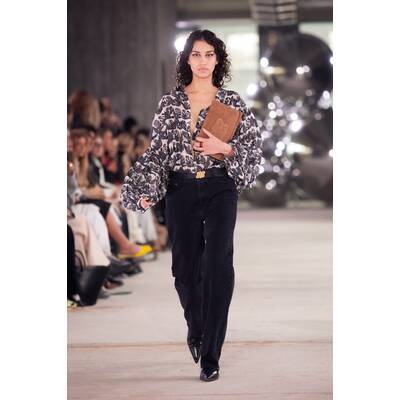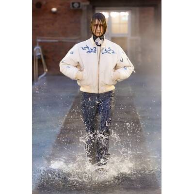 Das dänische Label Munthe zeichnet sich durch künstlerische, handgemalte Drucke und femininen Urban-Boho-Stil aus. Die Herbst/Winter-’25-Kollektion läutet mit verspielten Academia-Looks das Comeback der Preppy-Ästhetik ein. Oversized-Brillen, Schluppenblusen, weite Jeans und buchförmige Clutches betonen den spannenden Mix aus Alltagstauglichkeit und Retro-Chic. Bei den Daytime-Looks dominieren Cordanzüge, Kappen und gemütliches Layering, und erinnern an lebendige Uni-Seminare, während abends Pailletten, Spitze und Oversized-Fellmäntel die Szenerie legendärer Studentenpartys heraufbeschwören.