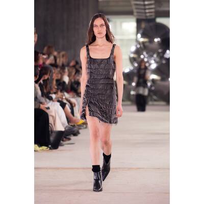 Das Skandi-It-Label räumt mit der Prämisse, skandinavische Mode sei stets minimalistisch auf und setzt stattdessen auf verspielte Party-Looks in farbenfrohen Designs. Für die Herbst/Winter-’25-Kollektion definiert die Brand Copencore neu mit mutigen Texturen, eklektischem Layering und müheloser Streetstyle-Ästhetik. Inspiriert von Editorials der späten 90er und frühen 2000er, setzen Jeanette Madsen und Thora Valdimars auf kreative Styling-Details wie Schichtung aus Hemd, Strick und Blazer. Die Runway-Looks kombinieren Leder-Motojacken mit Rüschen und seidige Kleider mit XXL-Faux-Fur-Hüten.