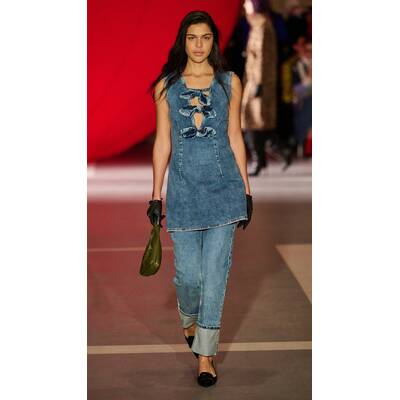 - Retro-Ästhetik – Munthe bringt Academia-Vibes mit Schluppenblusen und weiten Jeans, während Rotate die späten 90er und frühen 2000er mit kreativen Layering-Techniken zelebriert.