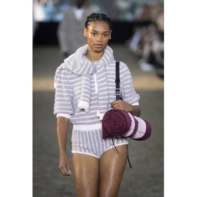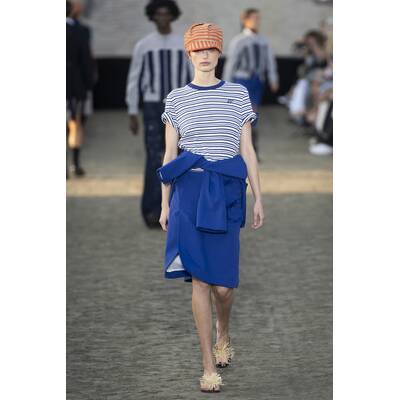 Für Frühjahr/Sommer 2026 präsentiert Marimekko eine frische, fröhliche Kollektion, in der die ikonischen Blumenprints ausnahmsweise in den Hintergrund treten und stattdessen Streifen die Show dominieren. Unter dem Titel "Art of Pattern" feiert das finnische Label die Handwerkskunst hinter seinen legendären Mustern und würdigt zugleich seine Wurzeln: Vom firmeneigenen Druckatelier bis zum künstlerischen Erbe der Gründerin Armi Ratia. Auf einem ehemaligen Industriegelände im Hafen von Kopenhagen entfalten sich zarte Pastellfarben. Neben Klassikern wie Maija Isolas "Unikko" oder Erja Hirvis "Kukasta Kukkaan" liegt der Fokus diesmal klar auf Streifen: etwa dem legendären "Piccolo"-Muster auf strukturierten Baumwollhemden, das auch in vergrößerter Form auf Minikleidern auftaucht, oder dem diagonalen "Basso"-Print auf luftigen Tops und Shorts.
