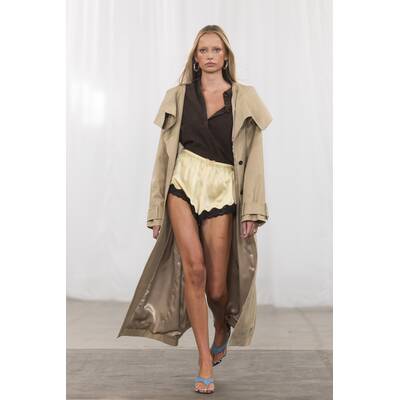 Mit „La Dans Act II“ präsentiert Skall Studio eine Frühjahr/Sommer 2026-Kollektion, die auf gefühlvolle, freie Bewegung setzt. Fließende Silhouetten, sanfte Naturtöne und weiche Materialien spiegeln die Leichtigkeit eines Sommermorgens wider. Locker geschnittene Kleider, entspanntes Tailoring und leichte Stoffe sind von Minimalismus und Poesie geprägt. Erstmals zeigt das Label Accessoires aus nachhaltigen Materialien wie Orangen- und Kaktusresten – darunter Schuhe, Taschen und Gürtel.