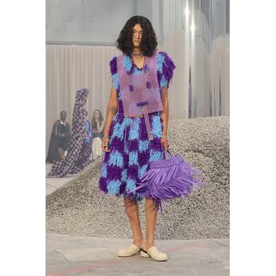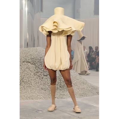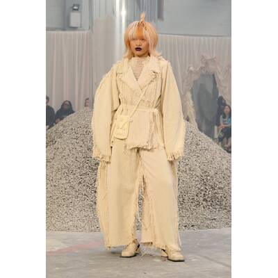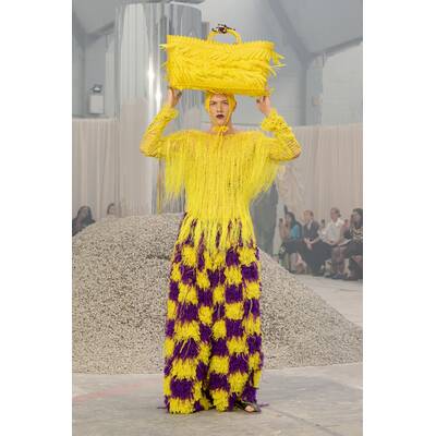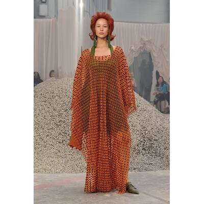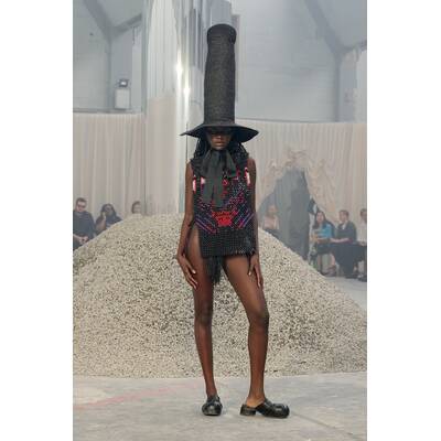 Die diesjährige Gewinnerin des Zalando Visionary Award präsentierte ihre erste Show "Dual Mandate". Die SS26-Kollektion ist tief verwurzelt in den vier schwingenden Dimensionen – Körper, Geist, Seele und Emotion – und entfaltet sich als multisensorisches Erlebnis. Naturfasern wie Baumwolle aus Uganda und Kenia, Sisal aus Tansania sowie Raffia und Jute aus Nigeria verleihen den Entwürfen Erdung und innere Ruhe. Strahlende Elemente aus Metall und Glas aus Kenia sowie recyceltem Plastik aus Nigeria setzen dazu einen energetischen Kontrast. Visuell überzeugte die Kollektion durch einzigartige Silhouetten und eine überraschende Farbwelt: von unbehandelter, naturbelassener Baumwolle über leuchtendes Gelb und tiefes Blau bis hin zu glänzenden Metallic-Tönen. Auffällige Accessoires wie mit Wasser gefüllte Glashandtaschen, oversized Strohhüte, kettenhemdartige Looks und aufwendig geflochtene Details unterstrichen den visionären Charakter der Kollektion.