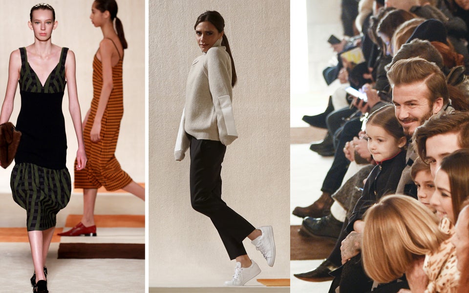 Als eine "sehr feminine Kollektion" mit maskulinem Einschlag beschrieb die britische Modeschöpferin und Sängerin ihre diesjährige Herbst- und Wintermode. Die Models liefen mit strengen Frisuren in großen Mänteln, aber auch engen Röcken und Kleidern in schwarz-weiß über den Laufsteg. Farbtupfer gab es in orange, grün und braun, auch gestreifte Stücke trugen viele Models. Auch den High Heels hat Victoria Beckham abgeschworen. Sie selbst trug Sneakers, die Models Budapester.