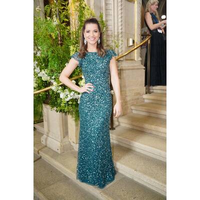 Nadja Bernhard trägt ein Kleid von Talbot Runhof.