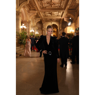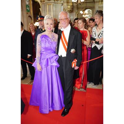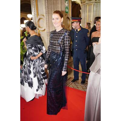TV-Star und Designerin Silvia Schneider ließ für ihre eigene Kreation ganze 67.644 glitzernde Steinchen verarbeiten. Funkelnde Konkurrenz macht ihr Topmodel und Schauspielerin Barbara Meier, die wieder einmal auf Poleschinski setzt. Ebenso wie Tanzprofi Maria Santner. Die für das Jungdamen- und Jungherrenkomitee zuständige Powerlady führte die Debütant:innen in einer prachtvollen roten Federn-Robe in den schönsten Ballsaal der Welt – und stahl dem Tanznachwuchs, der von einer von Giovanna Engelbert kreierten Swarovski-Tiara gekrönt wird, beinahe die Show.