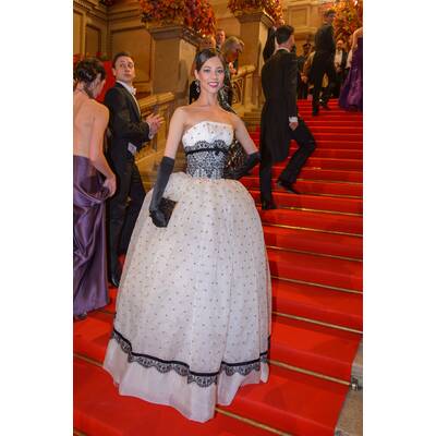 Die Farbe des Jahres, Viva Magenta, war freilich auch stark am Ball der Bälle vertreten. Ekaterina Mucha stach in einem Kleid von Frack-Designerin Stefanie Hausner hervor. Kerstin Lechner trat mit Riesenschleife von Niko Niko auf. Letzterer war auch für die Roben von Ana Milva Gomez und Monika Ballwein verantwortlich. Top-Couturière Laskari verhalf Star-Geigerin Lidia Baich zum perfekten Auftritt in Gold. Auf internationales Fashion-Gespür vertraute indes TV-Beauty und Wrabetz-Freundin Leona König, die ganz in Weiß von Rami Kadi aus dem Libanon viel Bein zeigte.