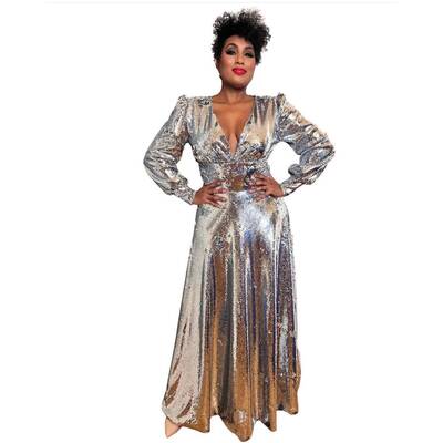 Ana Milva Gomes in einem silbernen Kleid von Niko Niko.