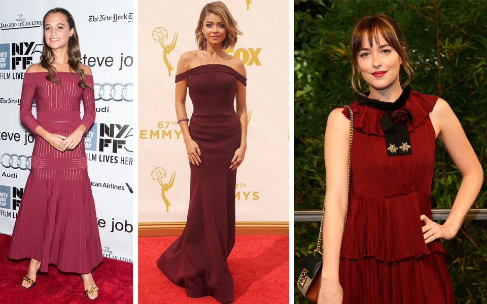 Sind wir doch mal ehrlich: Wir alle freuen uns insgeheim total, dass es endlich Herbst ist. So schön der Sommer auch war, Herbst heißt Kuscheltage mit Tee, dem Liebsten und einem schnulzigen Film, Herbst heißt leckere Naschereien mit Kürbis, Apfel und Zimt, und Herbst heißt auch, dunklere Töne und mehr Stoff, was uns automatisch schlanker wirken lässt. Ja, vorbei mit Zwangsdiät, weil Pastelltöne dick machen! Jetzt kommen Herbstfarben und machen das Leben leichter! Ein Ton hat es uns dabei besonders angetan: Die Trendfarbe Marsala! Das romantisch-düstere und warm-kuschelige Dunkelrot macht aus jedem Outfit einen It-Look. Das wissen auch Newcomerin Alicia Vikander, 50 Shades Star Dakota Johnson und Schauspielerin Sarah Hyland.