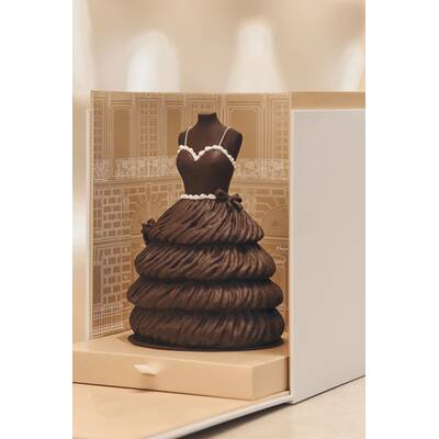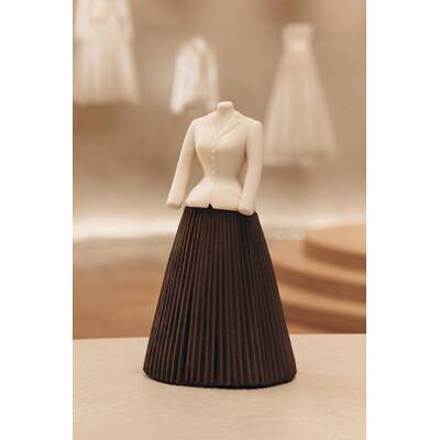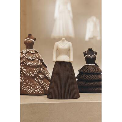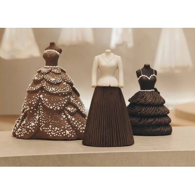 Die Kreation in Form der Robe Junon kann vorbestellt werden, etwa eine Woche dauert aktuell die Fertigung. Der Preis liegt bei 2500 Euro. Das Design in Form von der ikonischen Bar Jacket liegt bei 620 Euro und die in Form von der Robe Tourbillon liegt bei 580 Euro. Die beiden kleineren Kreationen haben ein Gewicht von etwa 2 kg und die Größere ca. 3 kg. Diese Schokokleider muss man einfach haben!