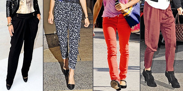 1. Sarouel-Hose. Sie ist schmal, hat oben Bundfalten und mogelt ein paar Pfunde locker weg, ist aber eher ungünstig bei breiten Hüften. Katie Holmes kombiniert mit hohen Schnür-Ankle-Boots perfekt.