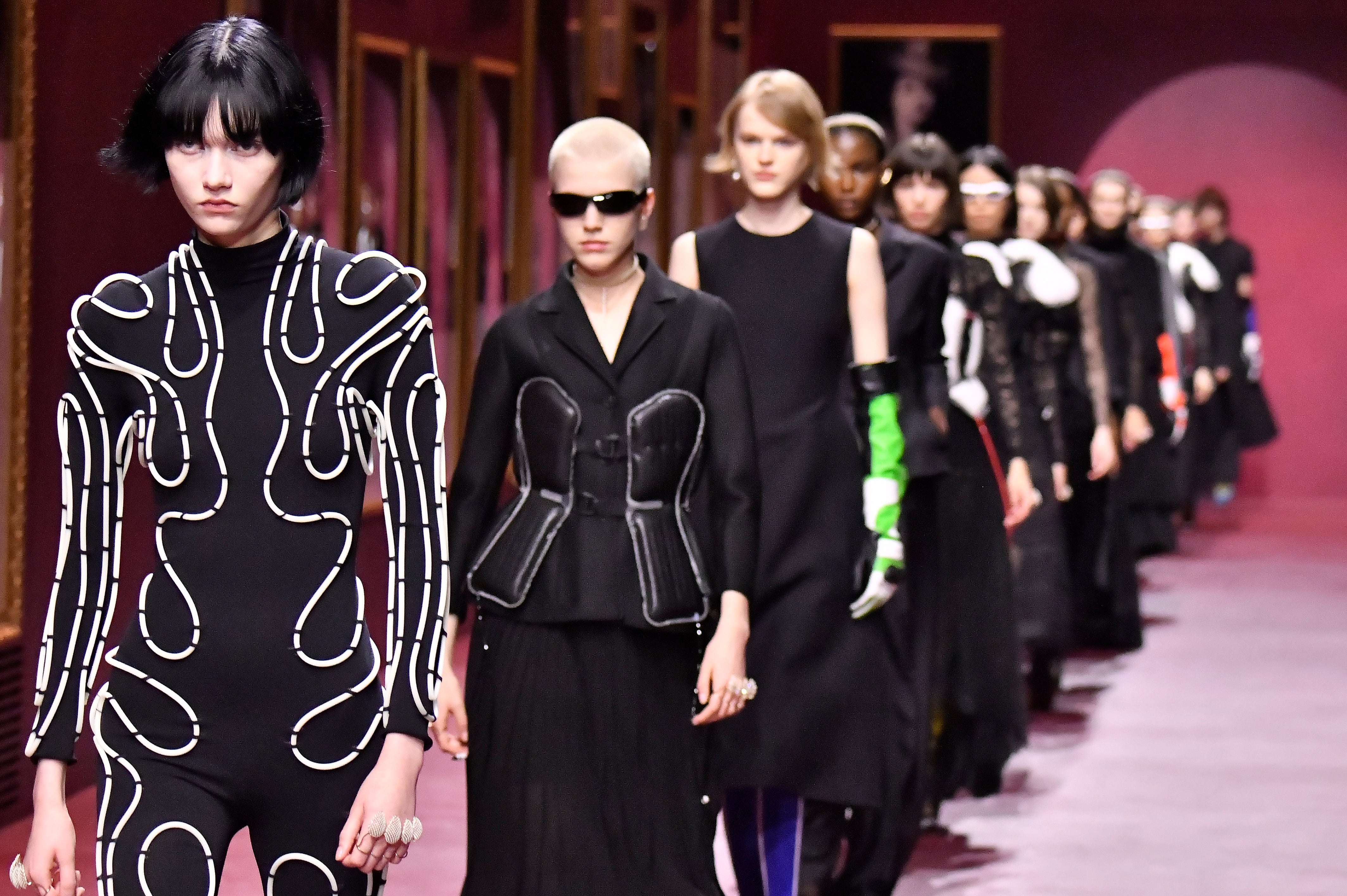 Das Modehaus Christian Dior hat am Dienstag bei den Pariser Prêt-à-Porter-Schauen seine Entwürfe für den kommenden Herbst und Winter präsentiert. Mit dem Titel "The Next Era" ("Die nächste Ära") zeigte Kreativdirektorin Maria Grazia Chiuri ein außergewöhnliches Zusammenspiel von Mode und Technologie. Eröffnet wurde die Show mit einem Neoprenanzug, der mit gelben und an Arterien erinnernde Schlangenlinien verziert war, die im Dunkeln leuchteten. Die ikonische Barjacke entwarf Chiuri diesmal als atmungsaktive und wärmeregulierende Funktionskleidung, für die sie mit dem italienischen Start-up-Unternehmen D-Air Lab zusammenarbeitete.