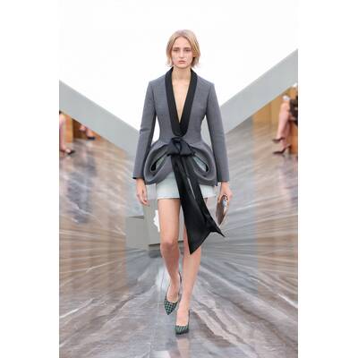 Besonders auffällig: der Schleifen-Trend! Ob an Blusen, Schuhen oder Kleidern, die verspielten Akzente zogen sich durch die ganze Kollektion. Mit einem cleveren Materialmix setzte er aufregende Highlights, die den Looks das gewisse Etwas verliehen und sie zu wahren Kunstwerken machten.