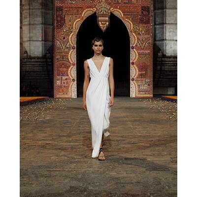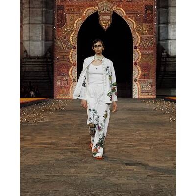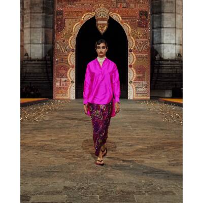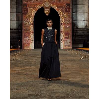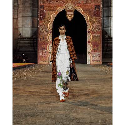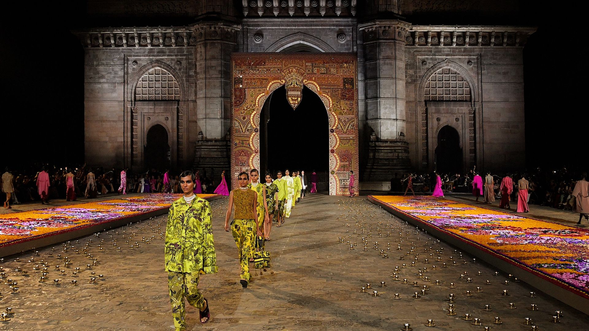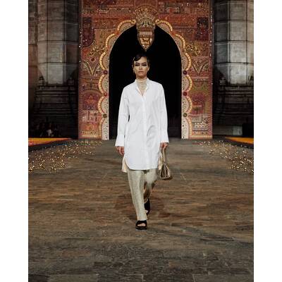 Dior präsentierte gestern die Herbstkollektion von Maria Grazia Chiuri im Gateway of India in Mumbai. Die Kreativdirektorin ist seit Jahren mit Karishma Swali befreundet – Künstlerischer Leiterin des Chanakya-Ateliers und der gemeinnützigen Chanakya School of Craft in Mumbai.