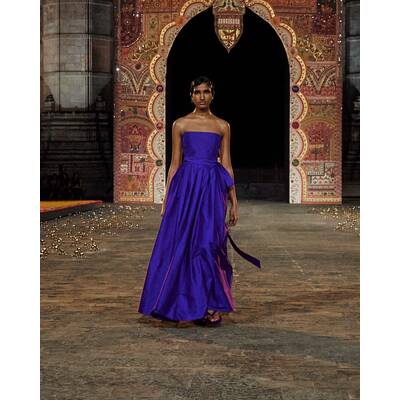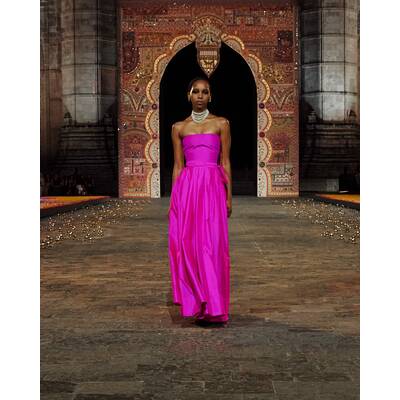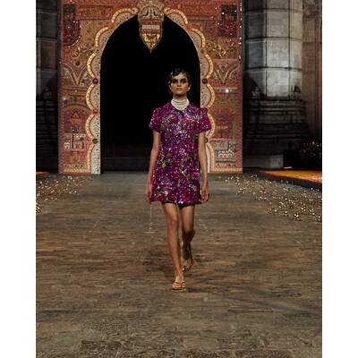 Mit dieser Kollektion wollte Chuiri die Freundschaft zu ihr und Indien auf modische Art und Weise inszenieren. Man spürt die Emotionen, die das französische Modehaus mit dem Land und der Kultur verbinden. Natürlich über die von Indien inspirierten Mode-Trends, aber auch über die Klänge, zu denen die Models über den Runway schritten. Die Schnitte sind zeitlos und traditionell indisch. Leichte Materialien wie Seide und eine breite Farbpalette, von Erdtönen, Schwarz, Weiß bis hin zu knalligen Farben, wie Pink. Bunte Prints, Strass und Pailletten runden die Kollektion ab.