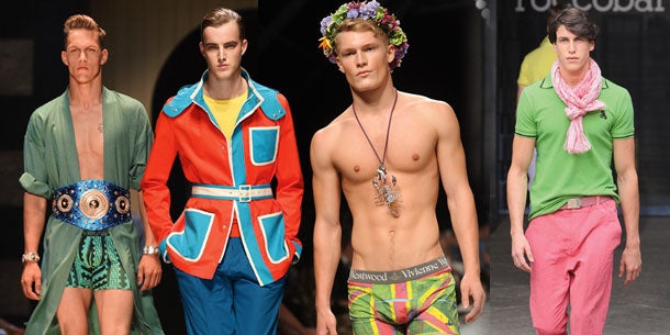 Blumenkränzchen, rosarote Trenchcoats und steiler Gladiatoren-Look. Im Sommer 2013 müssen Männer gaaaanz stark sein.