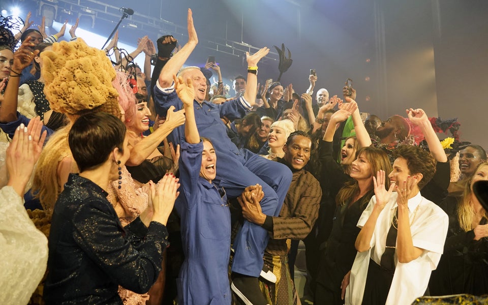 Der französische Star-Designer Jean Paul Gaultier hat mit einer spektakulären Show seinen Abschied von den Haute-Couture-Modenschauen zelebriert. Zu Gaultiers letztem Defilee am Mittwochabend in Paris wurde ein Musical aufgeführt, bei dem prominente Künstler wie der britische Sänger Boy George auftraten. 220 Models und Musen trugen den 67-Jährigen auf ihren Schultern, er warf dem begeisterten Publikum im Théâtre du Châtelet Luftküsse zu.
