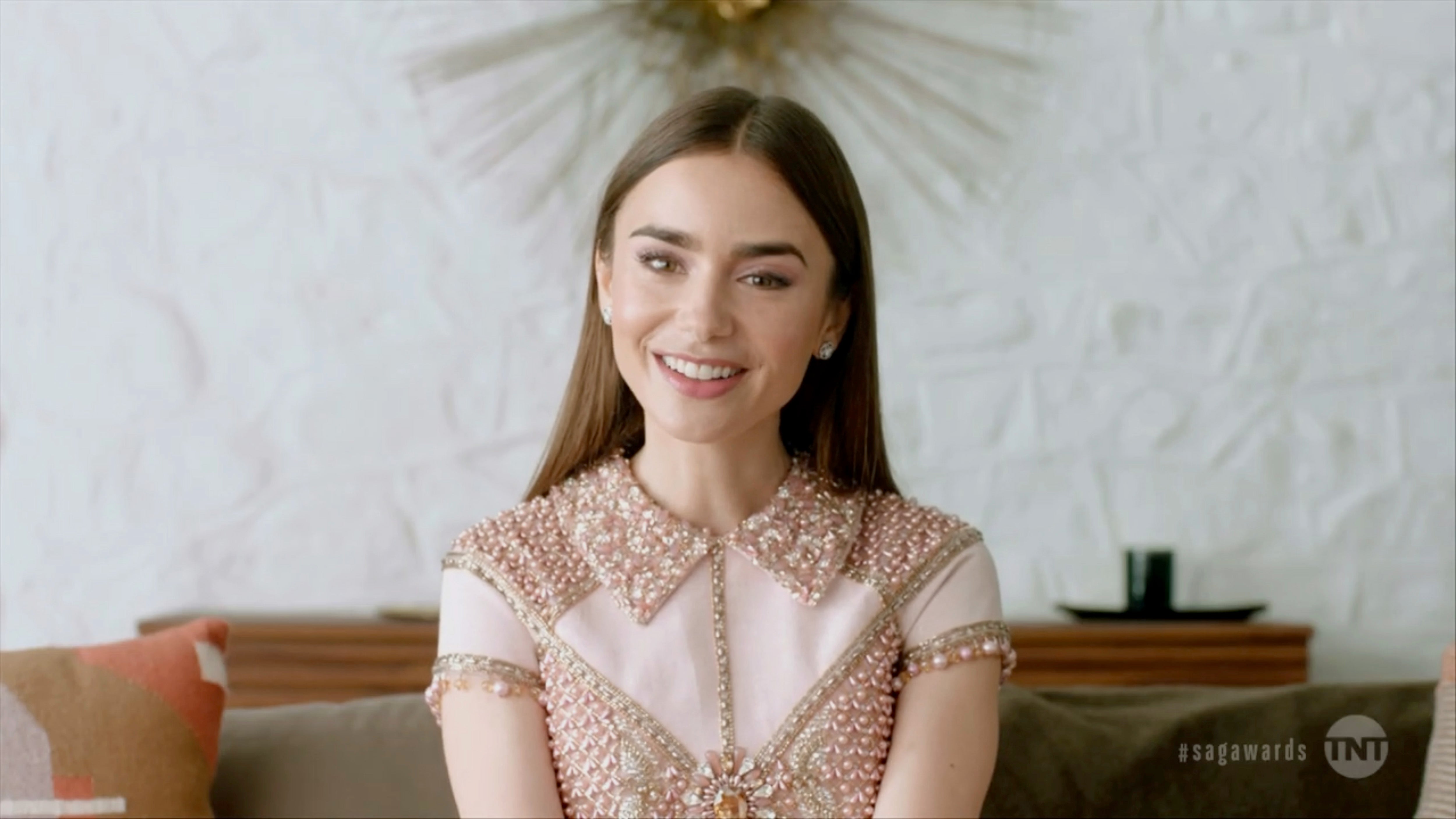 Lily Collins zog am Abend der SAG Awards alle Blicke auf sich. Die bildschöne Schauspielerin hatte bereits im Februar die Aufgabe gemeinsam mit Schauspielkollege und Rapper Daveed Diggs die Nominierten der einzelnen Kategorien über Instagram zu verkünden. Der Star der Netflix-Serie Emily in Paris begeisterte bei der Verleihung mit einem pastell-rosa Minikleid des libanesischen Designers Georges Hobeika.