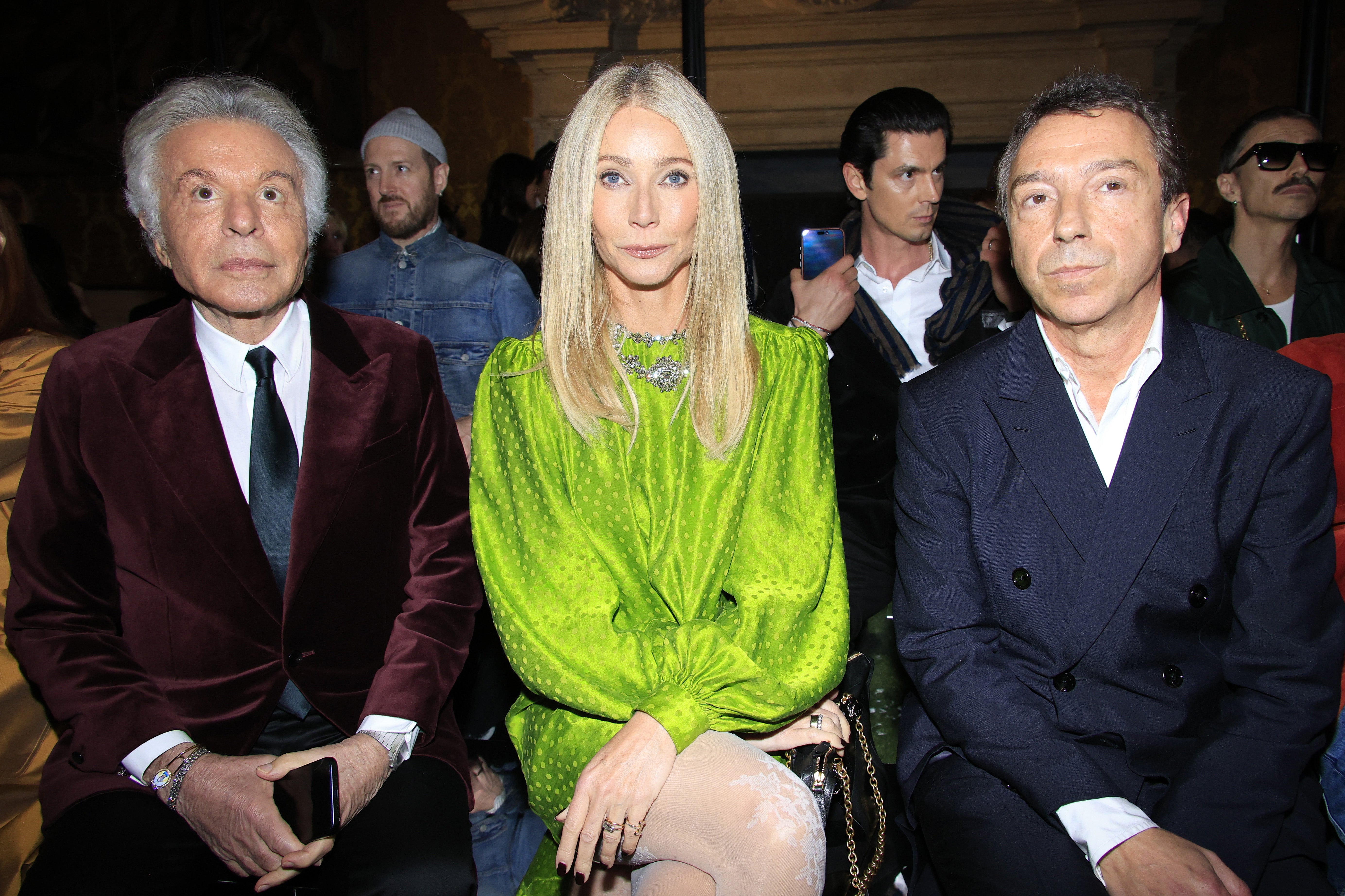 Natürlich ließ es sich die A-List nicht nehmen, bei diesem Spektakel in der ersten Reihe zu sitzen. Ganz vorne mit dabei: Gwyneth Paltrow. Die Oscar-Preisträgerin war ein absoluter Hingucker! Sie trug ein leuchtend grünes Satinkleid mit Polka-Dots und dramatischen Ballonärmeln. Den Look rundete sie mit weißen Spitzenstrumpfhosen, mintgrünen Satin-Riemchensandalen, einer auffälligen Silberkette und einer rockigen schwarzen Ledertasche ab.