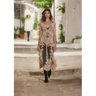 Seit 2012 beschloss Dolce & Gabbana seine aufwendigen Couture-Kreationen ausschließlich in Italien zu präsentieren - fernab des Trubels der Pariser Haute Couture Woche. Dabei wählte das italienische Luxuslabel immer symbolträchtige Orte, wie Neapel, Florenz oder Venedig. Diesmal entschied sich das Modehaus für Apulien. Ein Ort, der für seine Olivenbäume, Weinberge und „Trullo“-Häuser mit ikonischem Dach aus dem 14. Jahrhundert bekannt ist.