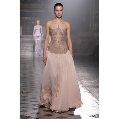 Nach dem maximalistischen Auftakt von Schiaparelli brachte Georges Hobeika am ersten Couture-Tag eine wohltuende Portion Eleganz und handwerkliche Feinheit auf den Laufsteg. Die Kollektion setzte ganz auf filigrane Couture: Transparente Stoffe, feinste Stickereien und perfekt modellierte Silhouetten dominierten die Looks.