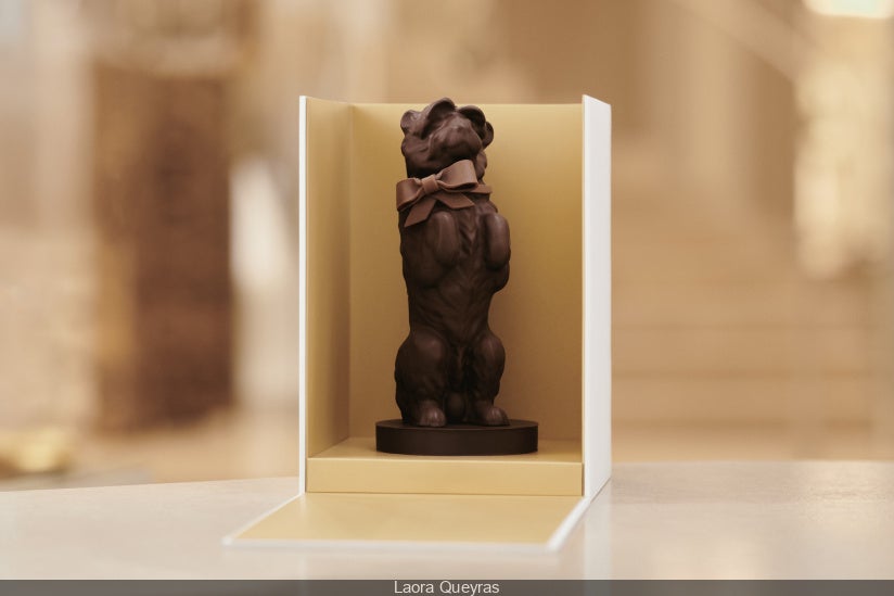 Natürlich wäre es keine Dior-Kreation, wenn sie nicht aus den besten Zutaten bestehen würde. Die Skulptur ist aus dunkler Schokolade gefertigt, gefüllt mit köstlichen Pralinen, und trägt eine kunstvoll gefertigte Schleife aus Milchschokolade. Schlichtweg zu schön, um sie einfach so zu verspeisen.