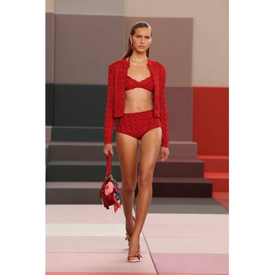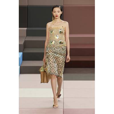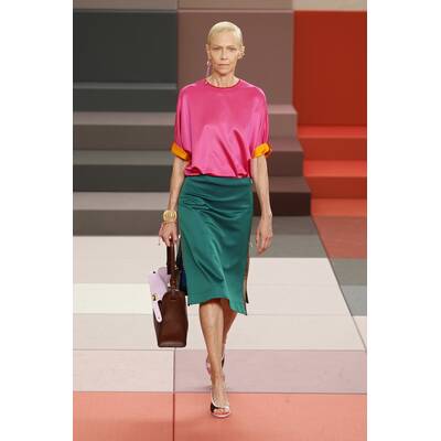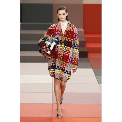 In einem Interview schwärmte Duff von der Show: „Ich bin total besessen von den Farben.“ Kein Wunder: Designerin Silvia Venturini Fendi schickte Models durch eine Kulisse aus bunten Pixelblöcken, die die Kollektion aus floralen Mustern, geometrischen Formen und kräftigen Tönen widerspiegelte.